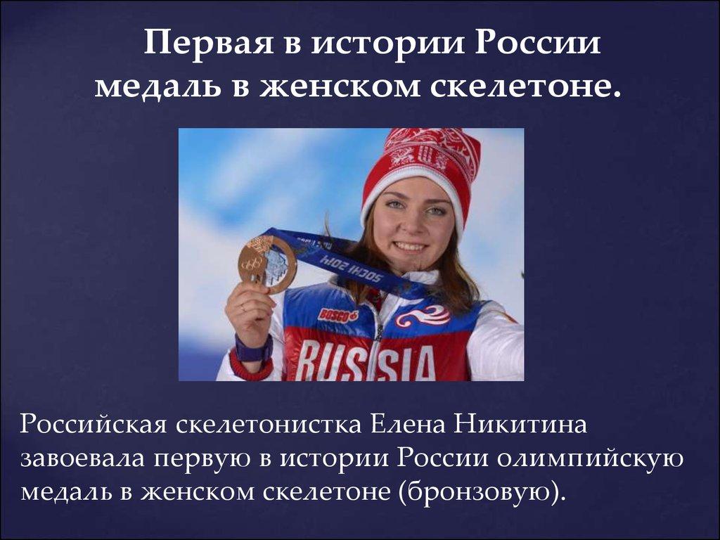 Первая в истории России золотаяолимпийская медаль в скелетоне.