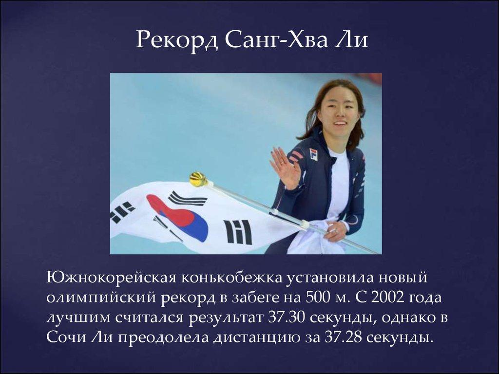 Рекорд Санг-Хва ЛиЮжнокорейская конькобежка установила новый