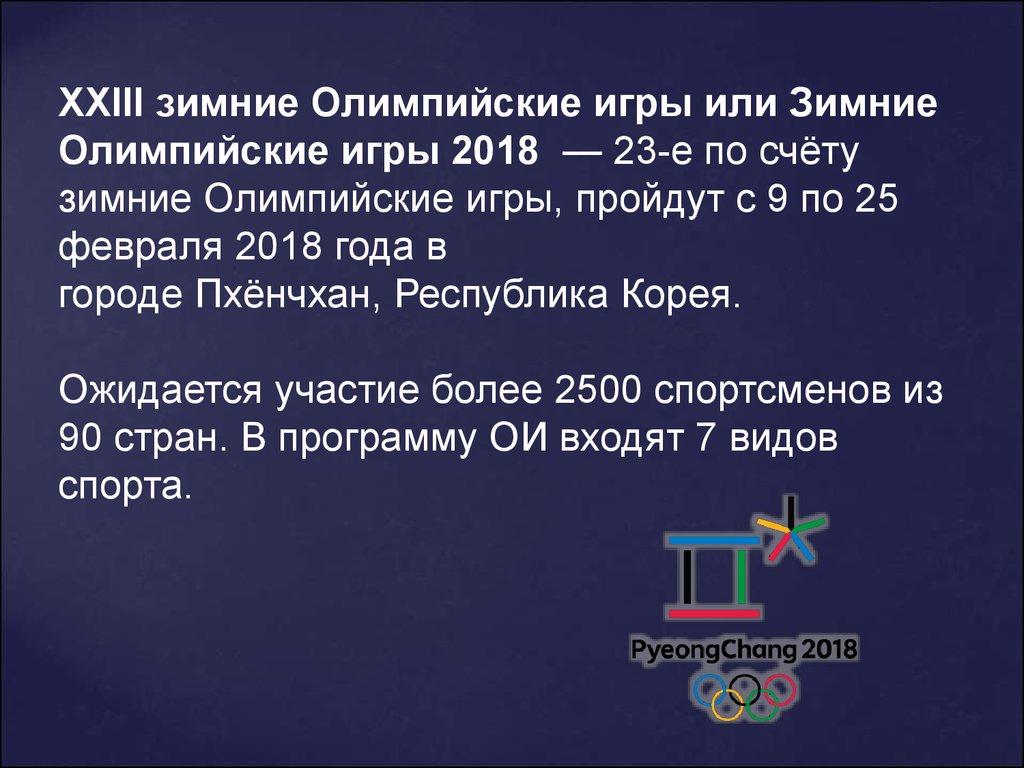 XXIII зимние Олимпийские игры или ЗимниеОлимпийские игры 2018 — 23-е по счёту