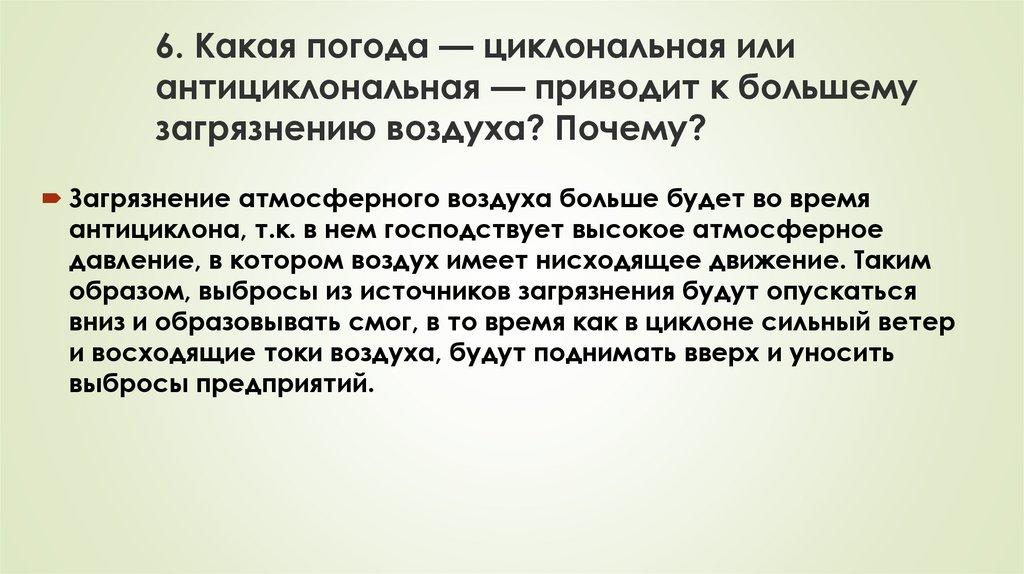 6. Какая погода — циклональная илиантициклональная — приводит к большему