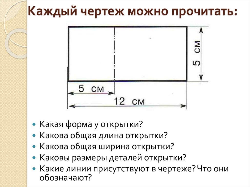 Каждый чертеж можно прочитать:Какая форма у открытки?