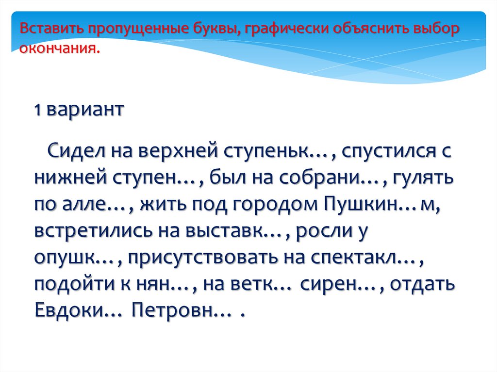 Вставить пропущенные буквы, графически объяснить выборокончания.