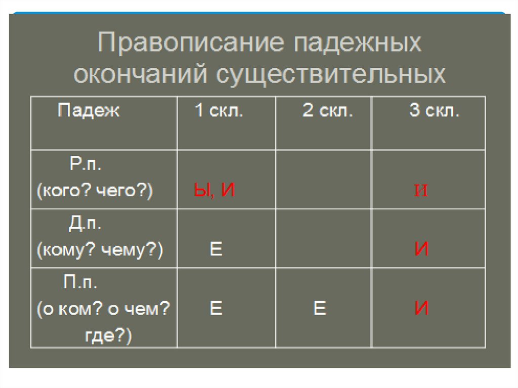 Правописание падежных окончаний именсуществительных зависит от склонения