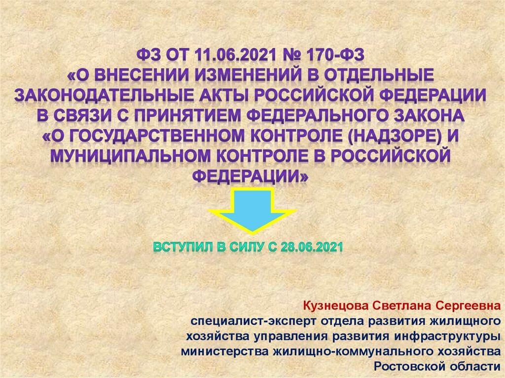 Государственный жилищный контроль ФЗ-170, внесение изменений