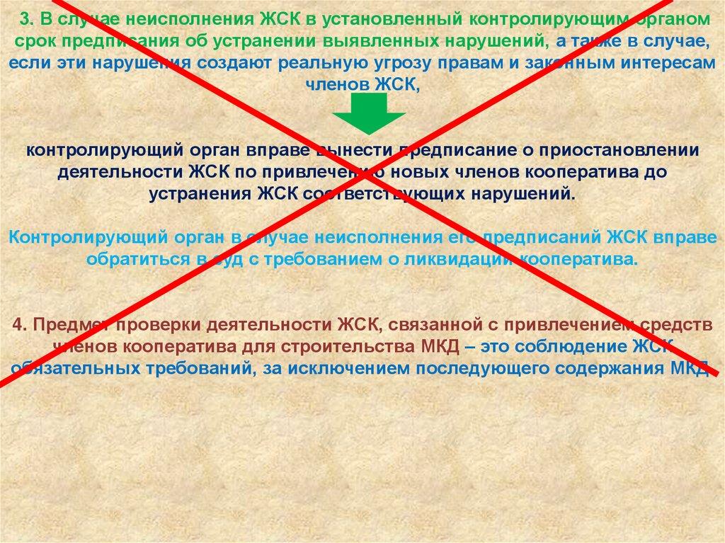 Контролирующий орган в случае неисполнения его предписаний ЖСК вправе