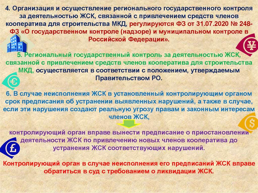кооператива для строительства МКД, регулируются ФЗ от 31.07.2020 № 248ФЗ «О государственном контроле (надзоре) и муниципальном контроле в