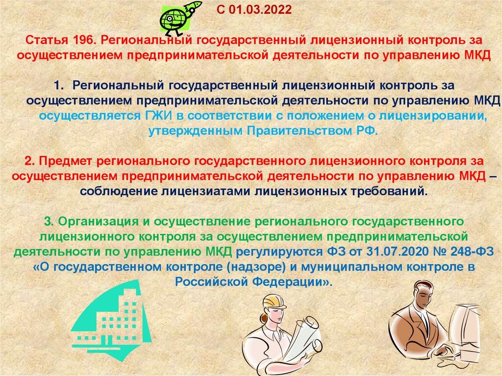 С 01.03.2022Статья 196. Региональный государственный лицензионный контроль за