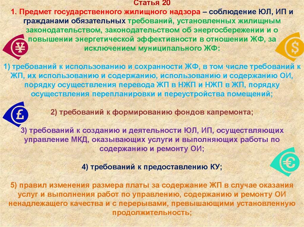 Статья 201. Предмет государственного жилищного надзора – соблюдение ЮЛ, ИП и