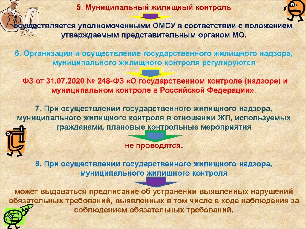 5. Муниципальный жилищный контрольосуществляется уполномоченными ОМСУ в соответствии с положением,