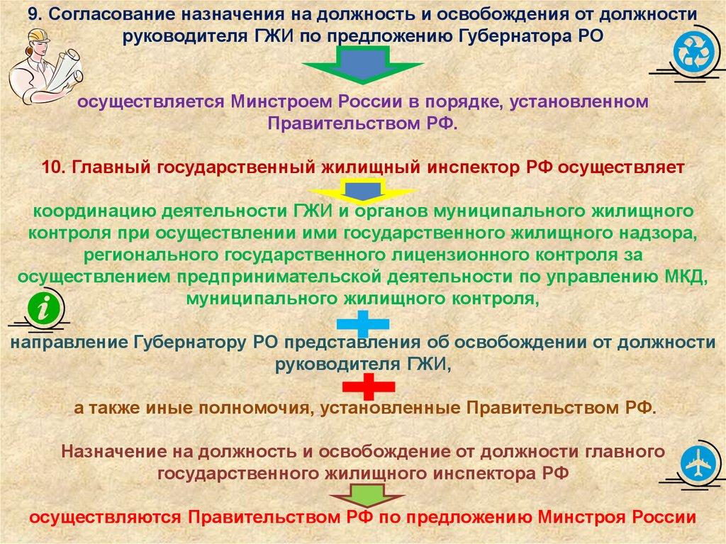 9. Согласование назначения на должность и освобождения от должностируководителя ГЖИ по предложению Губернатора РО