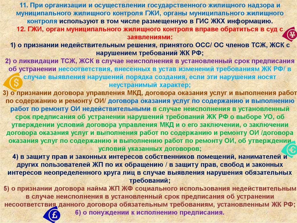 12. ГЖИ, орган муниципального жилищного контроля вправе обратиться в суд с