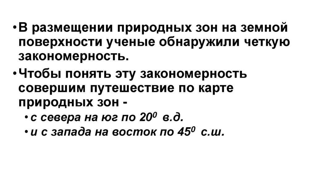 • В размещении природных зон на земнойповерхности ученые обнаружили четкую
