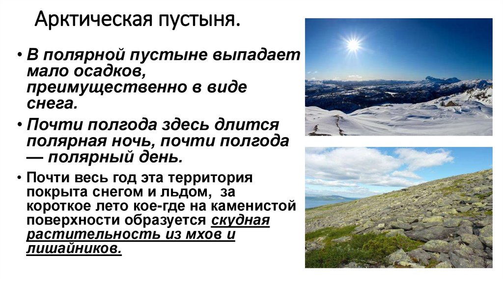Арктическая пустыня.• В полярной пустыне выпадает