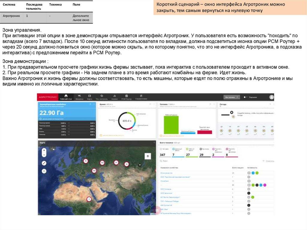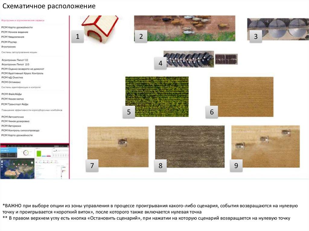 При активации этой опции в зоне демонстрации открывается интерфейс Агротроник. У пользователя есть возможность "походить" по