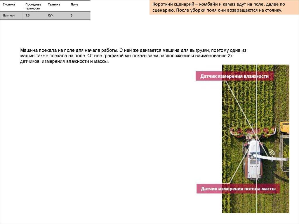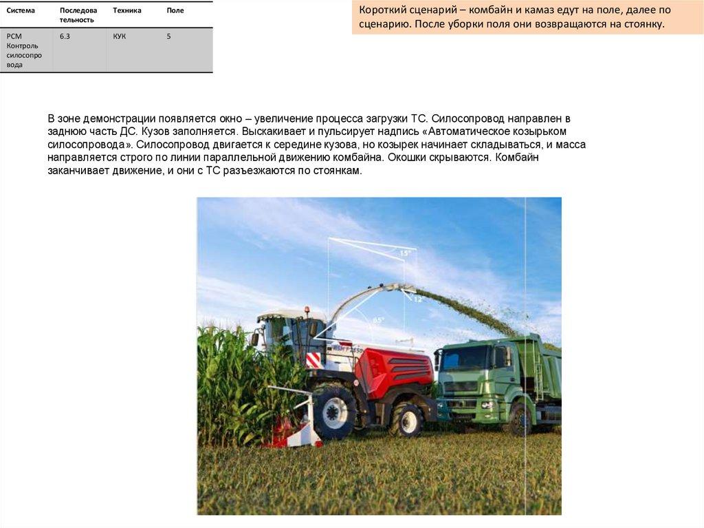 Короткий сценарий – комбайн и камаз едут на поле, далее по