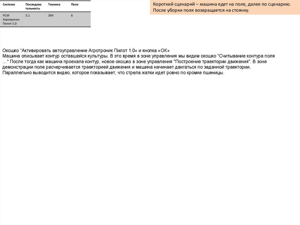 Короткий сценарий – машина едет на поле 6, далее по сценарию