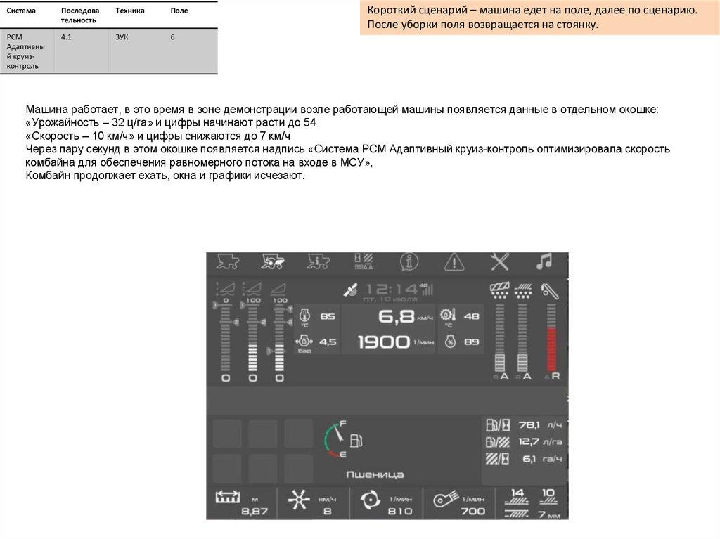 Параллельно выводится видео, которое показывает, что стрела жатки идет ровно по кромке пшеницы.