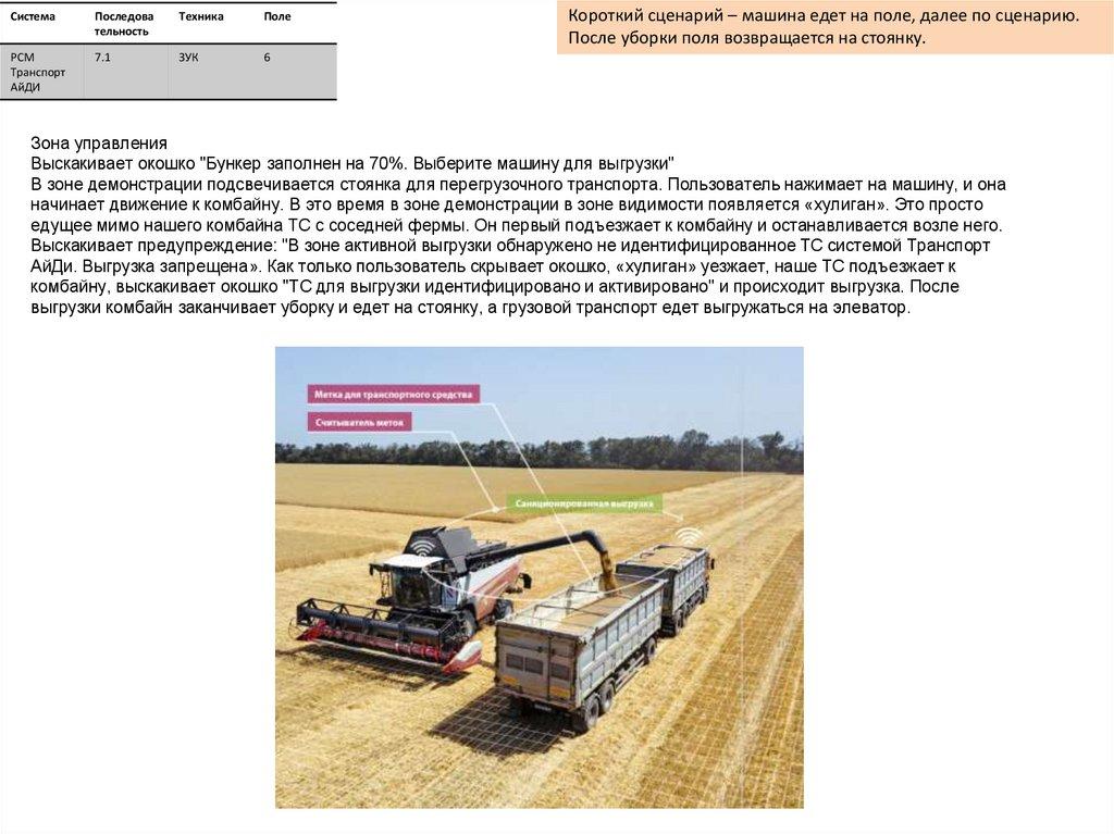 комбайну, выскакивает окошко "ТС для выгрузки идентифицировано и активировано" и происходит выгрузка. После