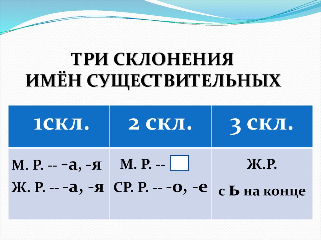 ТРИ СКЛОНЕНИЯИМЁН СУЩЕСТВИТЕЛЬНЫХ