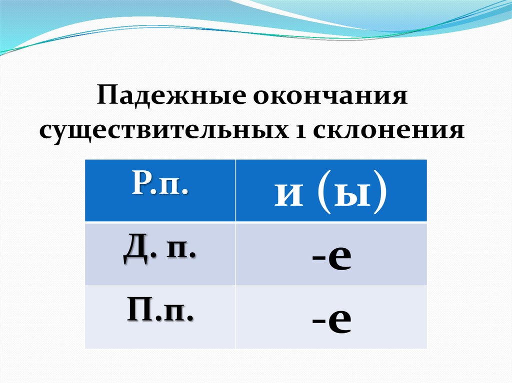 Падежные окончаниясуществительных 1 склонения