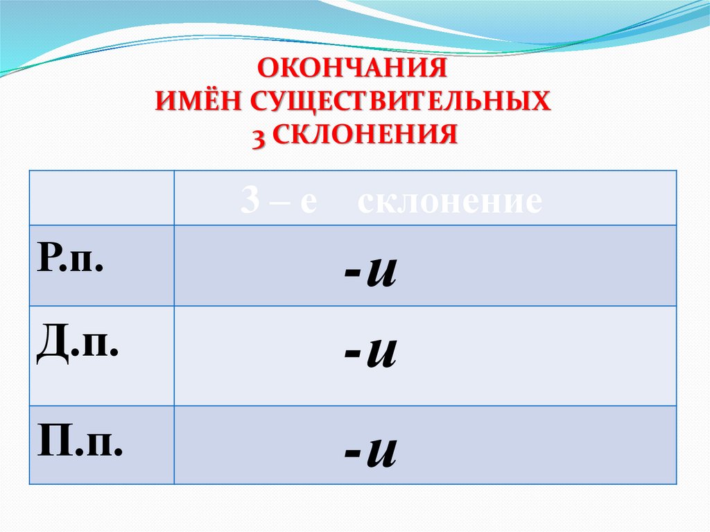 ОКОНЧАНИЯИМЁН СУЩЕСТВИТЕЛЬНЫХ