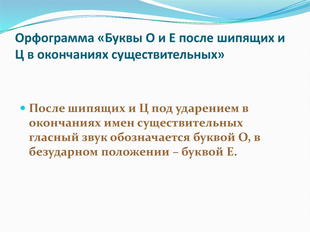Орфограмма «Буквы О и Е после шипящих иЦ в окончаниях существительных»