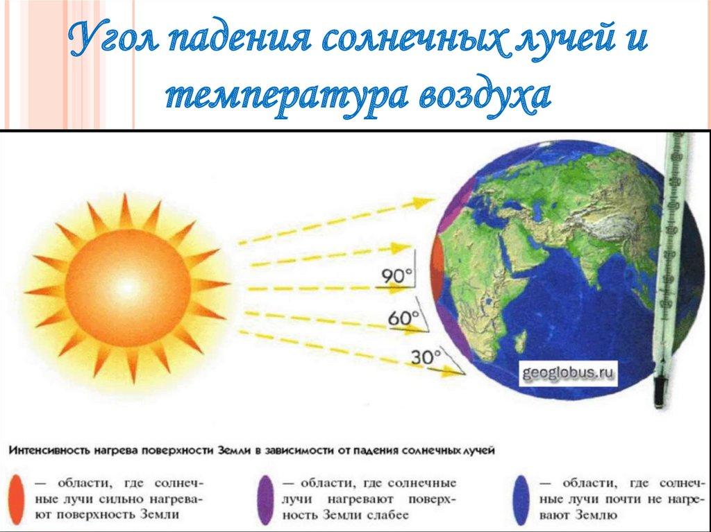 1. От чего зависит угол падения солнечных лучей?2. Как изменяется температура воздуха с высотой и в