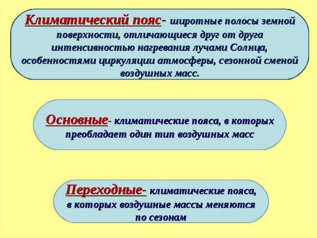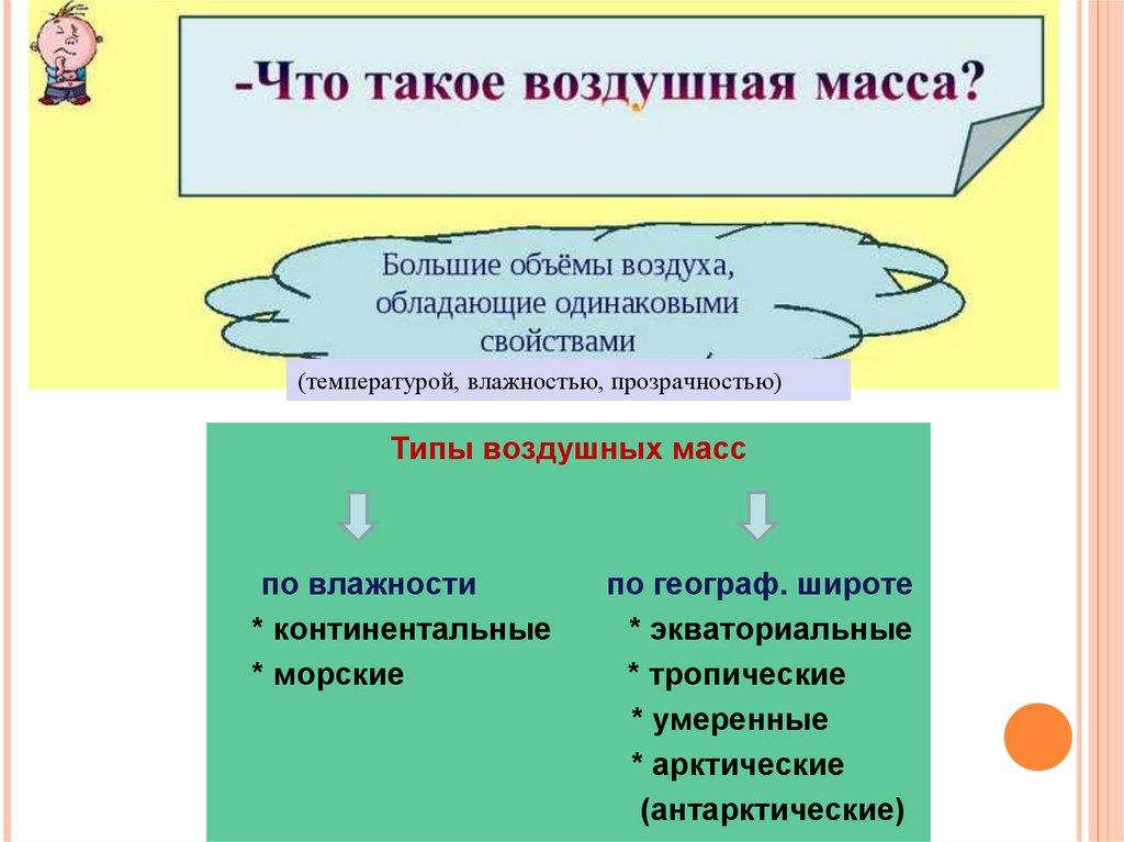 (температурой, влажностью, прозрачностью)Типы воздушных масс