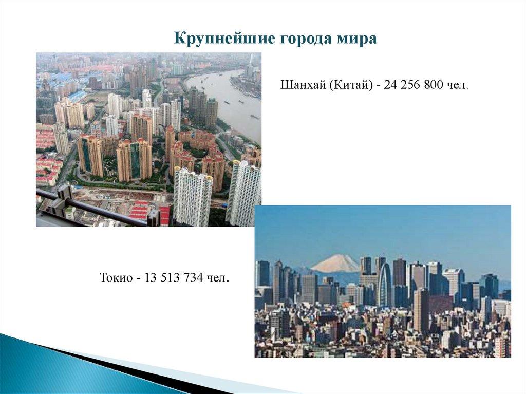 Крупнейшие города мираШанхай (Китай) - 24 256 800 чел.