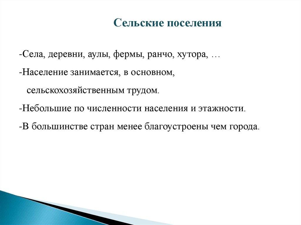 Сельские поселения-Села, деревни, аулы, фермы, ранчо, хутора, …