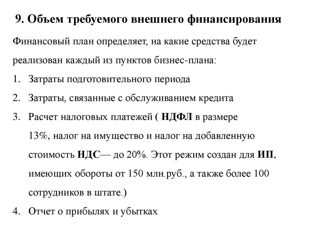9. Объем требуемого внешнего финансированияФинансовый план определяет, на какие средства будет