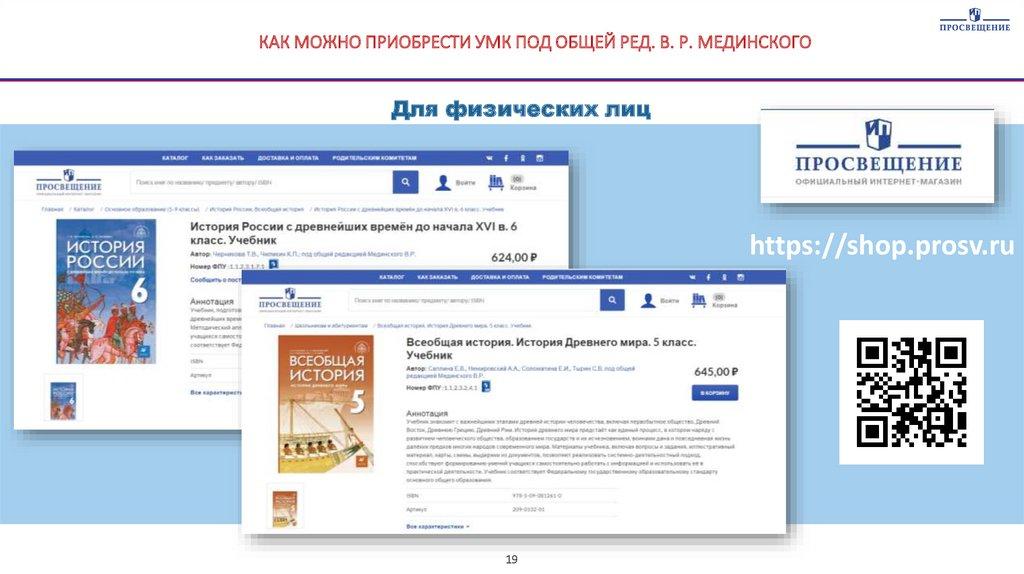 КАК МОЖНО ПРИОБРЕСТИ УМК ПОД ОБЩЕЙ РЕД. В. Р. МЕДИНСКОГОДля физических лиц
