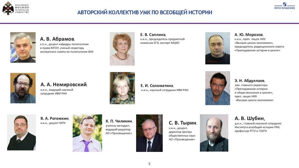 АВТОРСКИЙ КОЛЛЕКТИВ УМК ПО ВСЕОБЩЕЙ ИСТОРИИА. В. Абрамов,