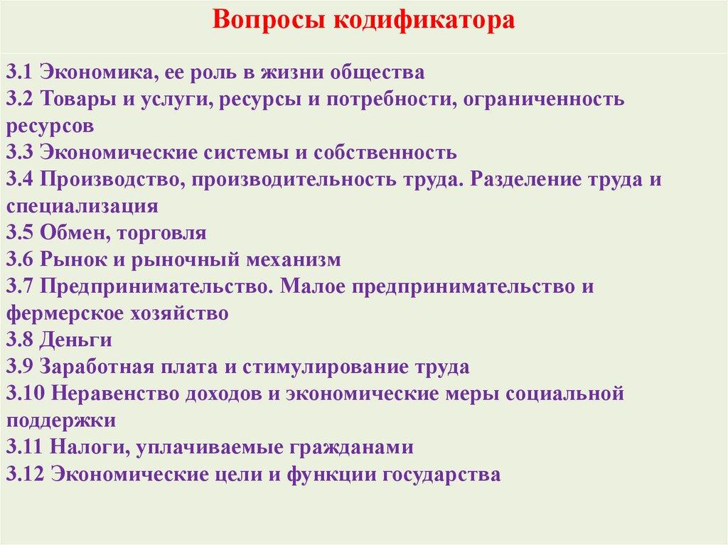 Вопросы кодификатора3.1 Экономика, ее роль в жизни общества