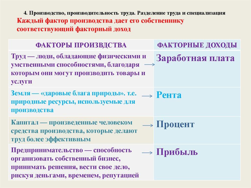 3.4 Производство, производительность труда. Разделение труда и
