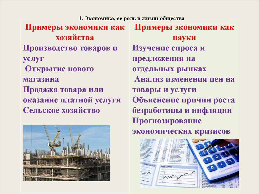 1. Экономика, ее роль в жизни обществаПримеры экономики как
