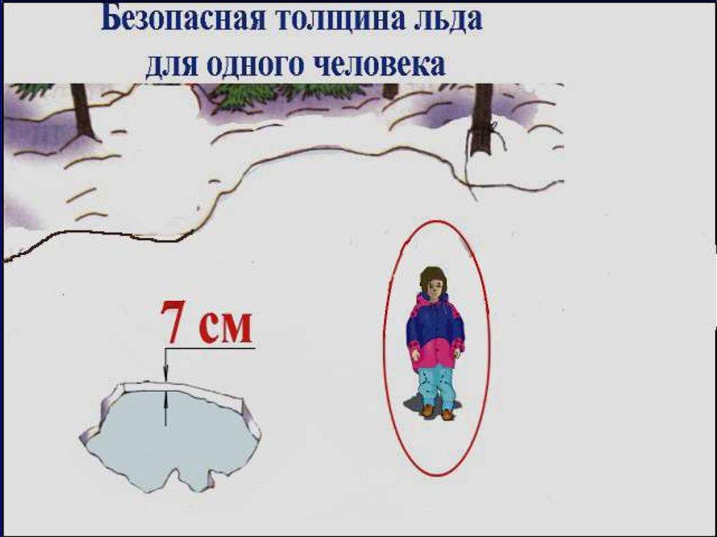 при толщине льда не менее 5 см. Большой группе
