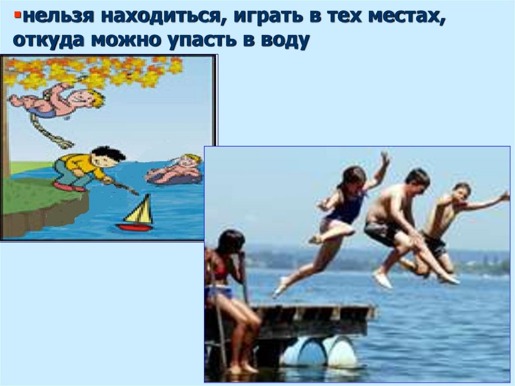 нельзя находиться, играть в тех местах,откуда можно упасть в воду