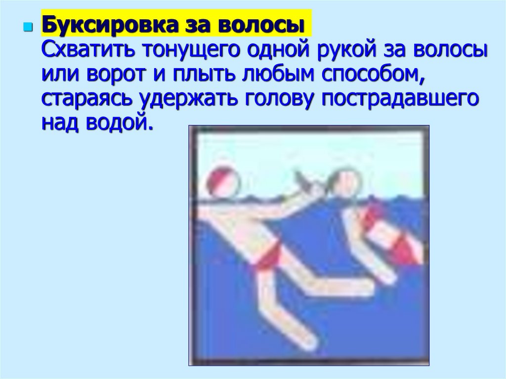 Буксировка за волосыСхватить тонущего одной рукой за волосы