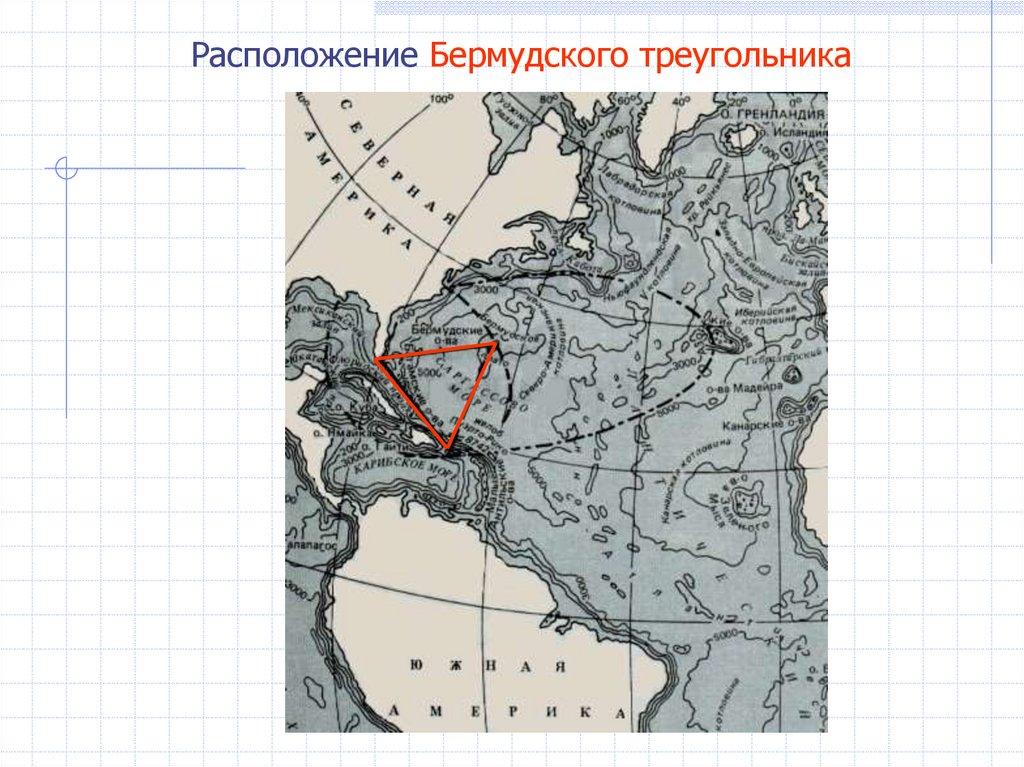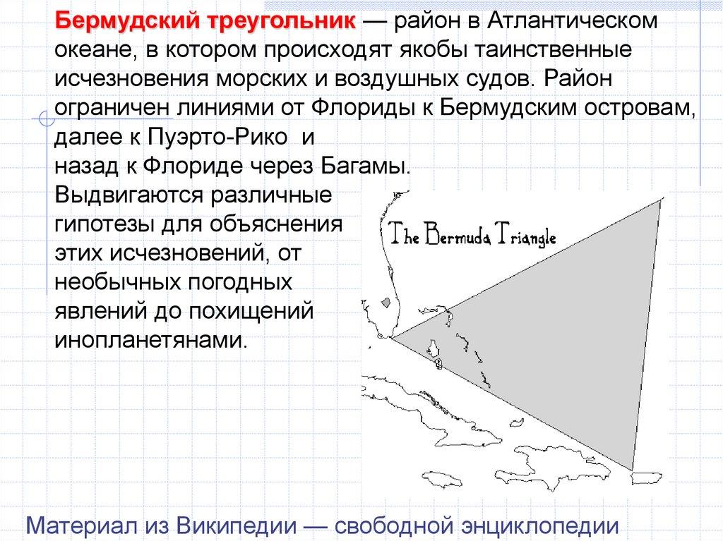 Бермудский треугольник — район в Атлантическомокеане, в котором происходят якобы таинственные