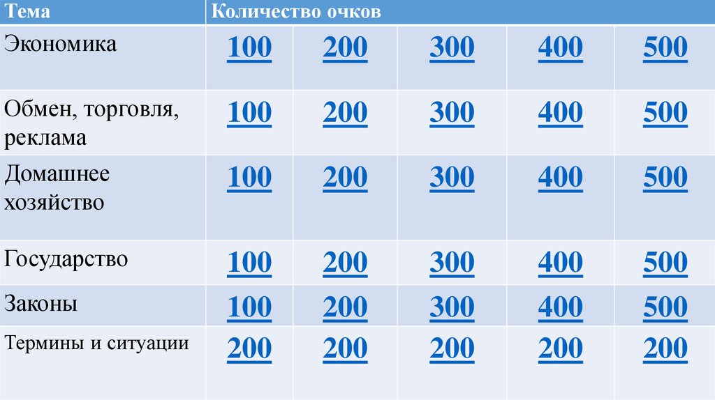 раунде (от 100 до 500). Игрок обязан отвечать