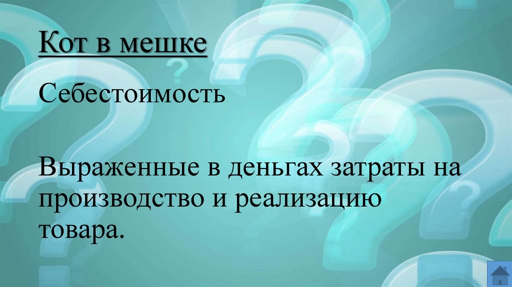 Кот в мешкеСебестоимость
