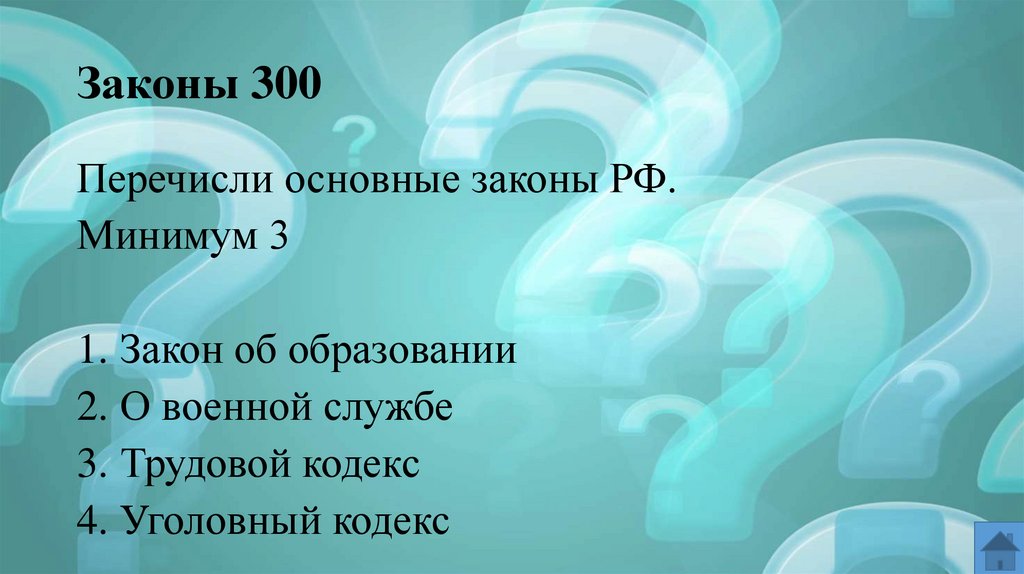 Законы 300Перечисли основные законы РФ.