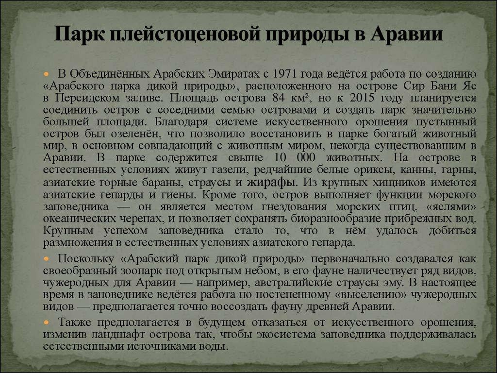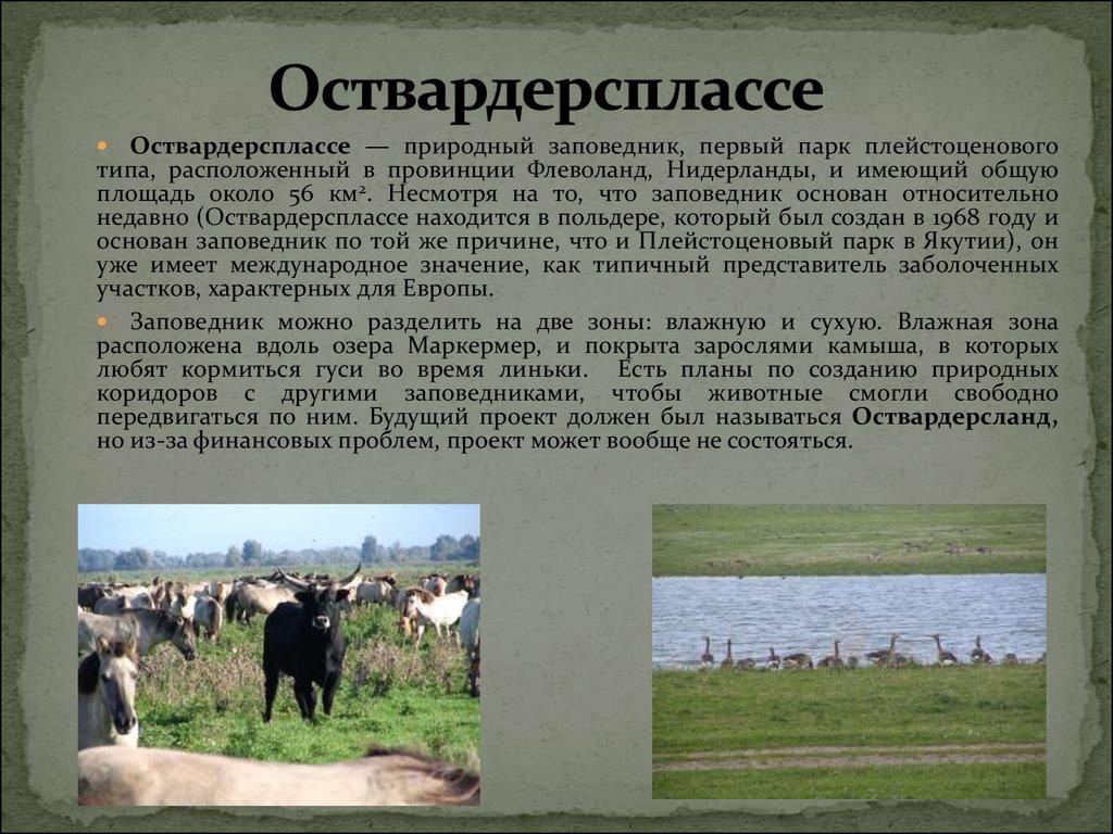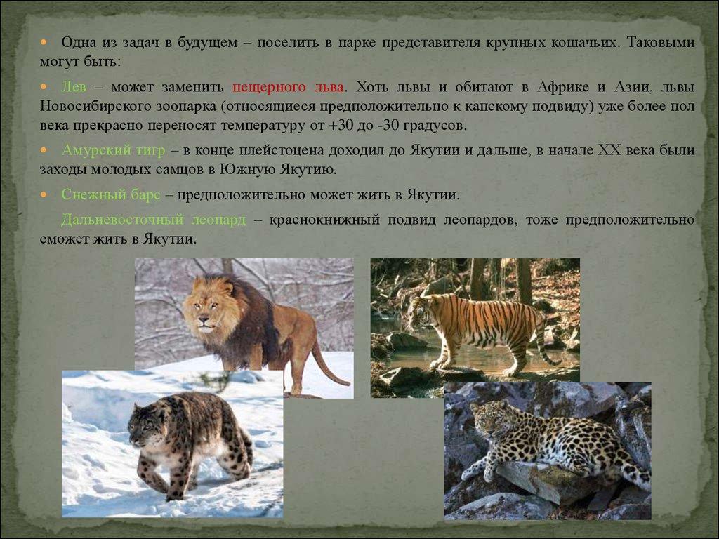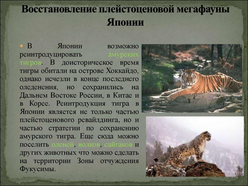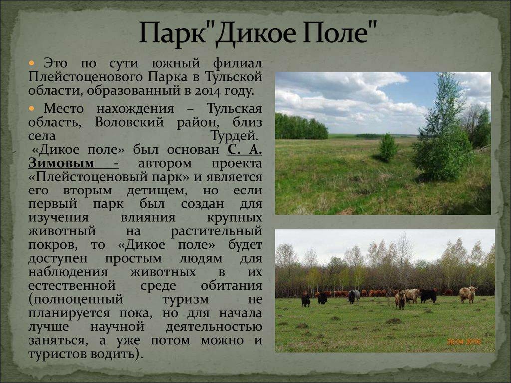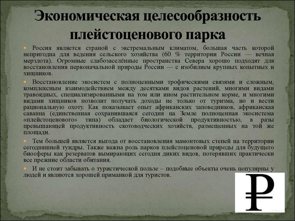 Идея плейстоценового парка состоит в реинтродукции сохранившихсявидов мегафауны с целью воссоздания почв и ландшафтов, характерных для