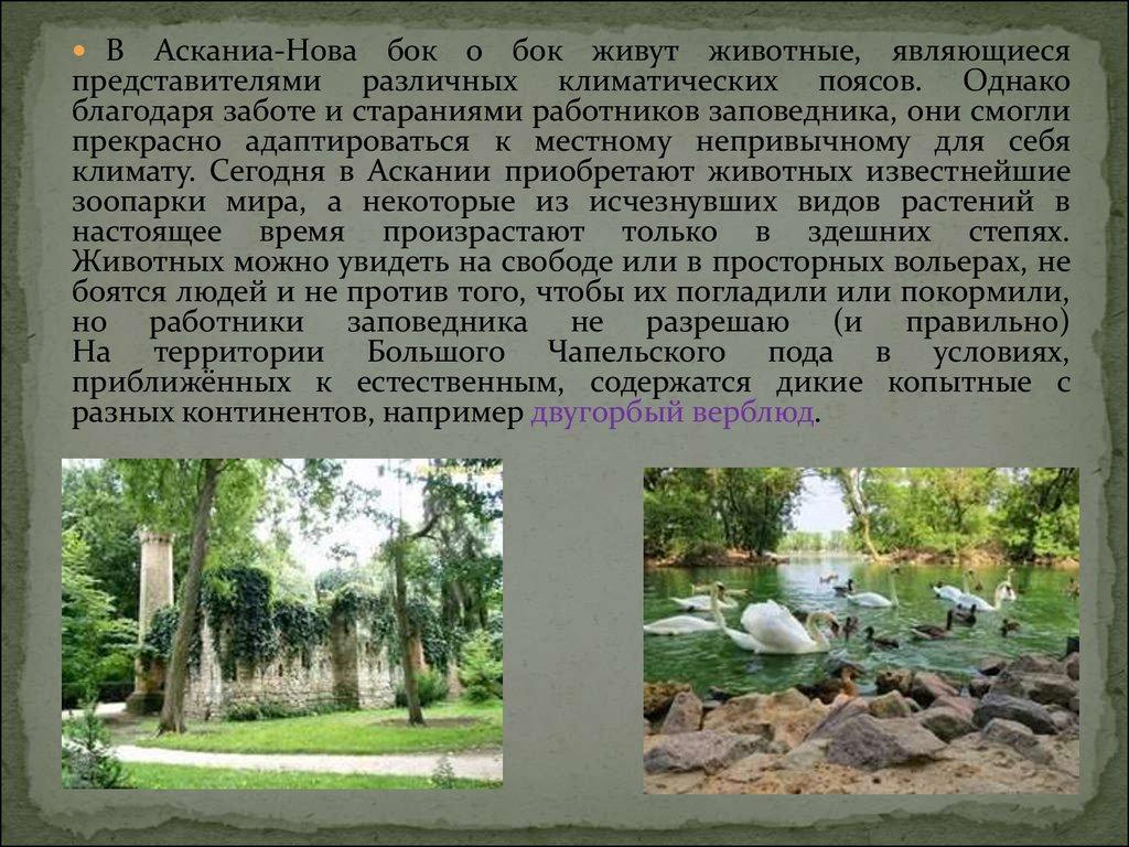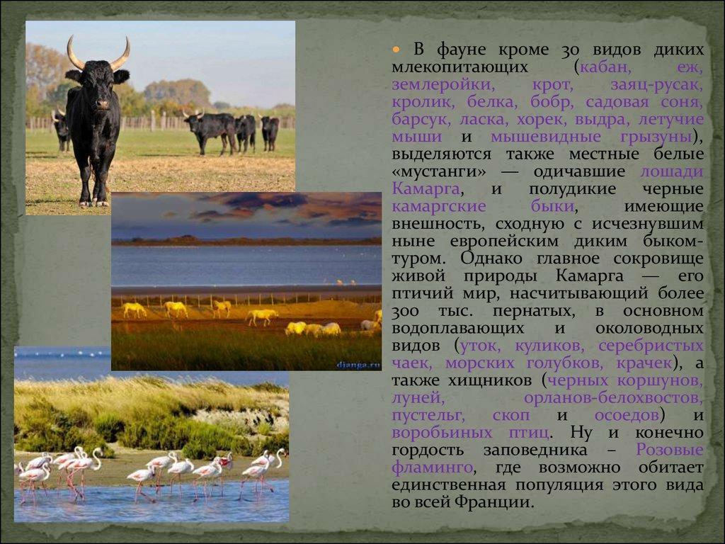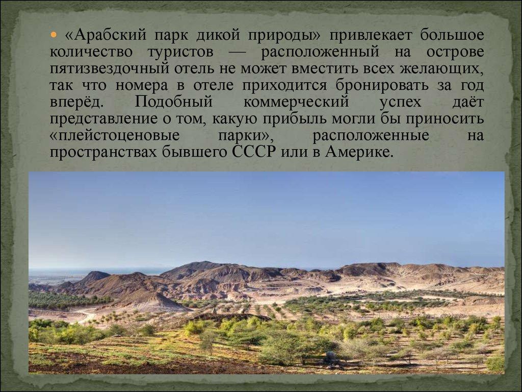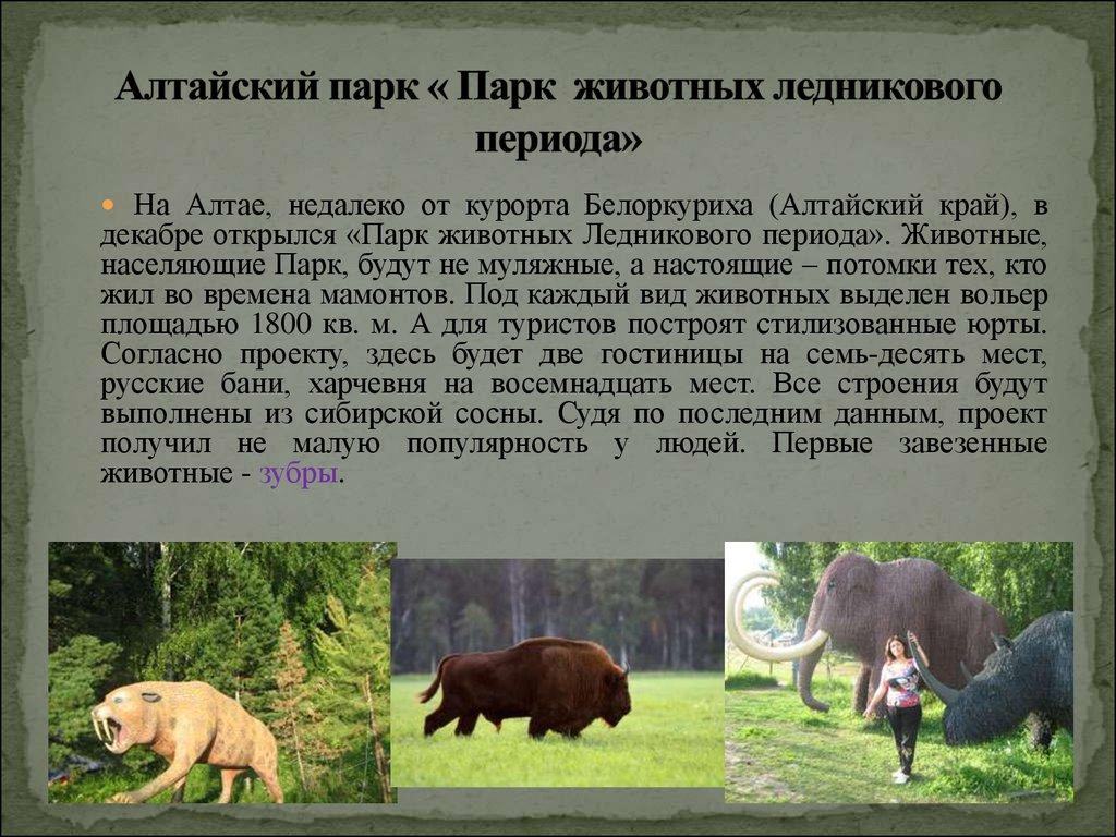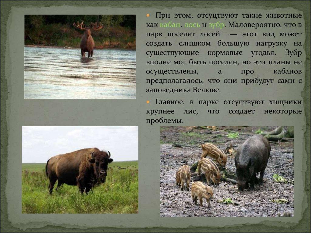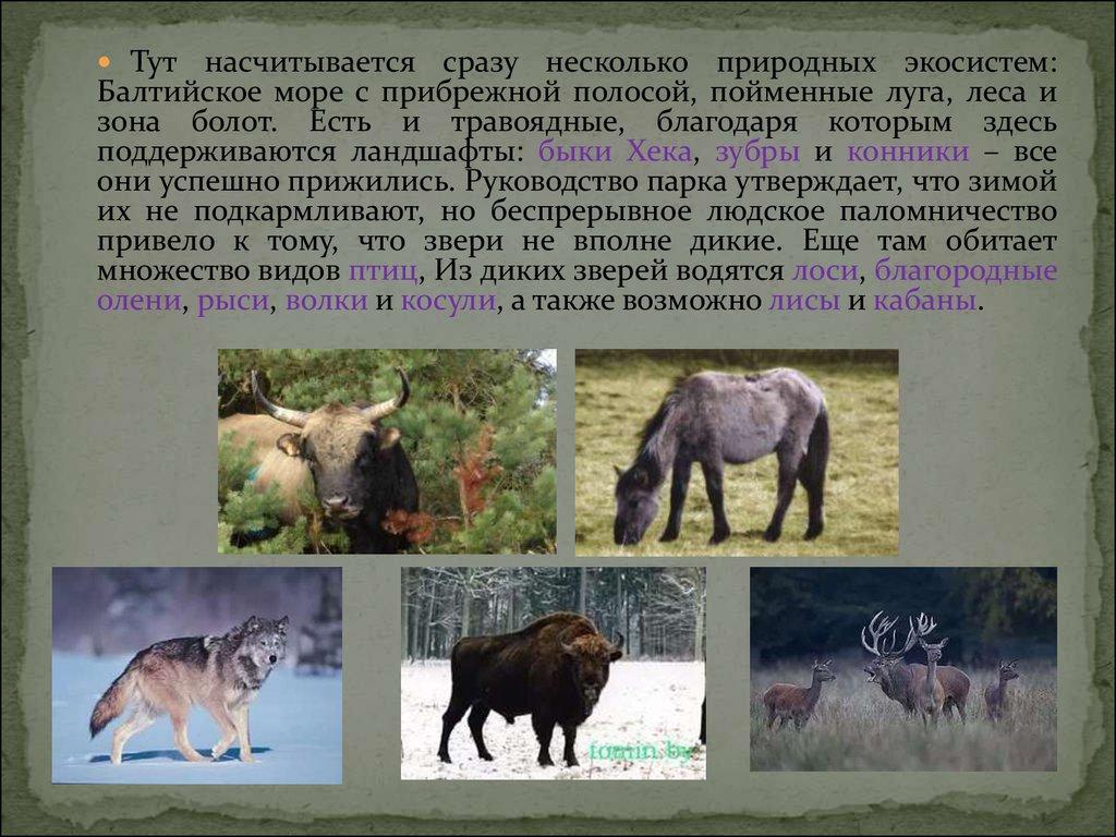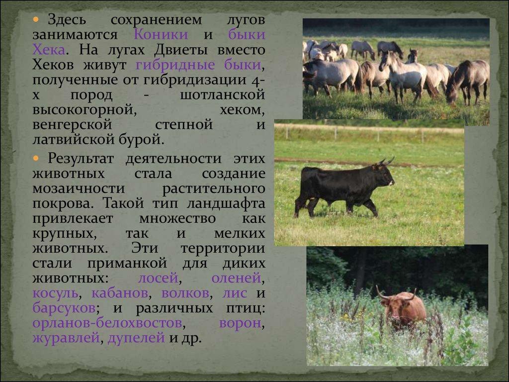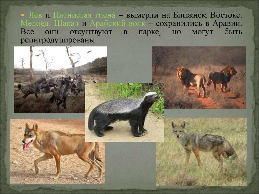 животные сохранились только в домашнем или вторично одичавших формах (коровыпотомки туров, одногорбый верблюд и другие) да и диких животных для таких проектов