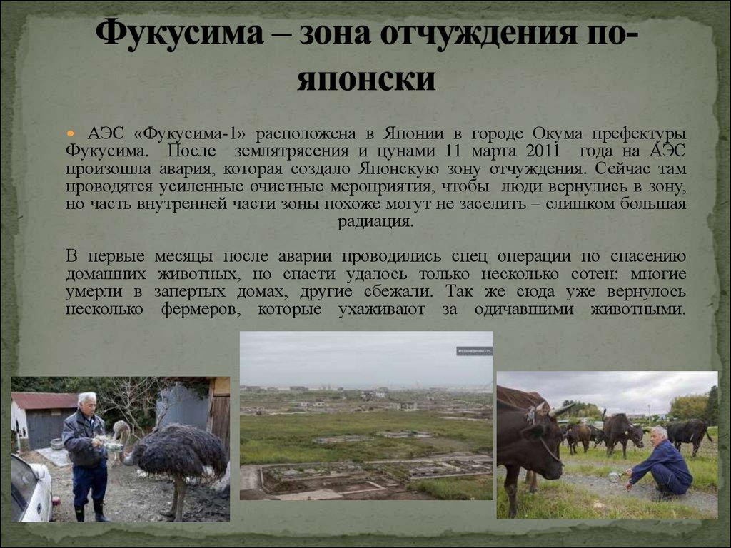 произошла авария, которая создало Японскую зону отчуждения. Сейчас там