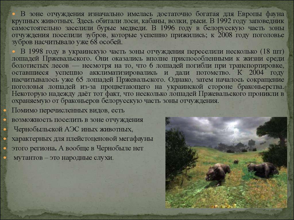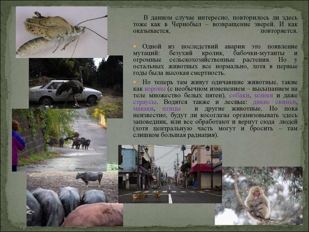В данном случае интересно, повторилось ли здесьтоже как в Чернобыл – возвращение зверей. И как