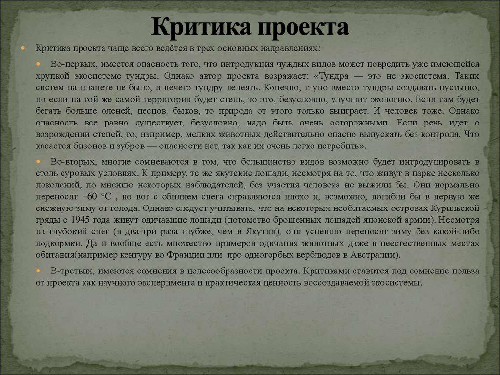 хрупкой экосистеме тундры. Однако автор проекта возражает: «Тундра — это не экосистема. Таких