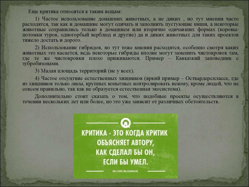 Еще критика относится к таким вещам:1) Частое использование домашних животных, а не диких , но тут мнения часто