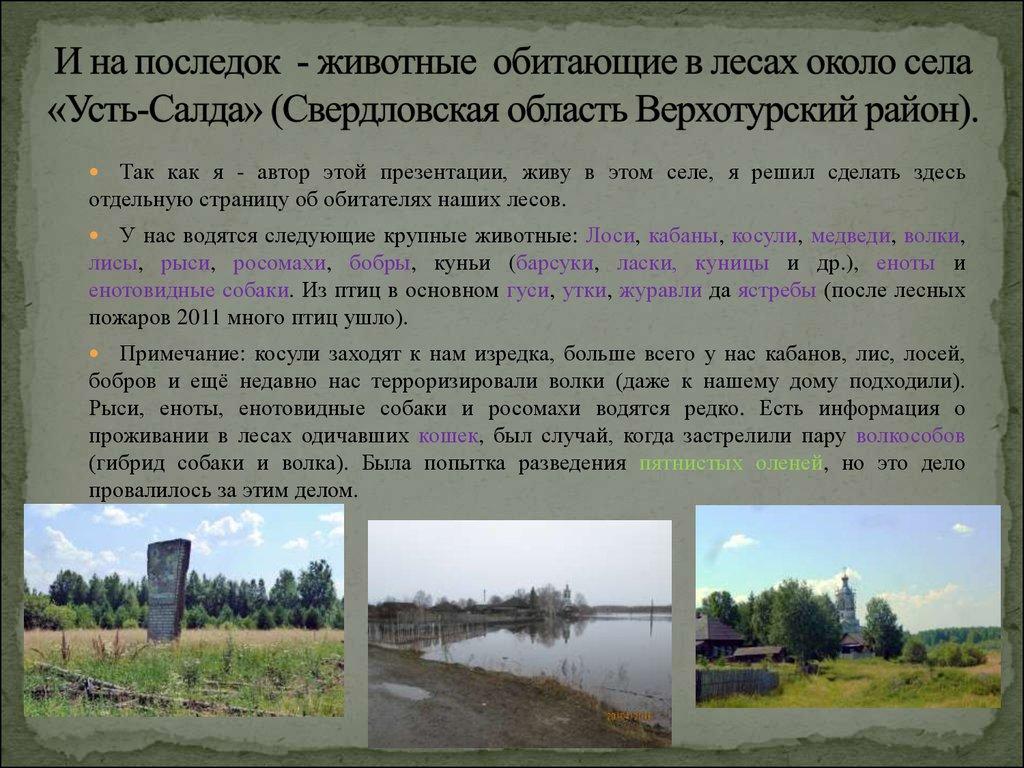 Так как я - автор этой презентации, живу в этом селе, я решил сделать здесьотдельную страницу об обитателях наших лесов.